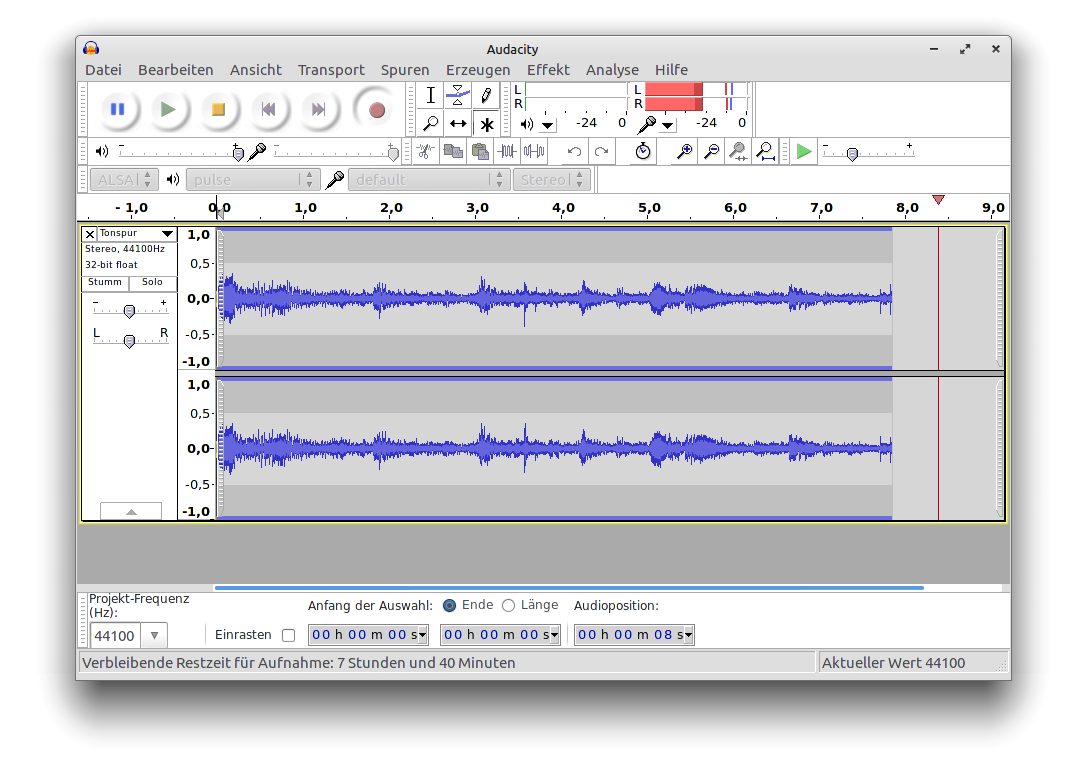Wer einen kleinen Podcast aufnehmen will oder ein analoges Audiosignal digitalisieren will wird die Aufnahmefunktion von Audacity lieben. Einfach richtiges Eingabegerät auswählen und auf Aufnahme klicken.